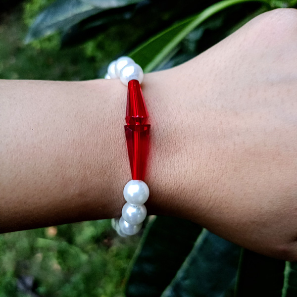 Handmade Red Crystal with White Pearl Bracelet