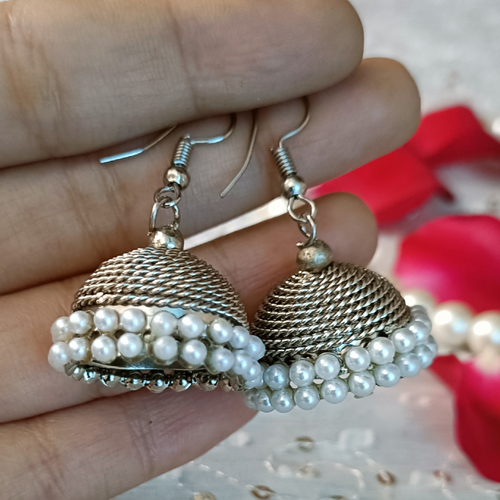 White Oxidised Temple Pearl Jhumki